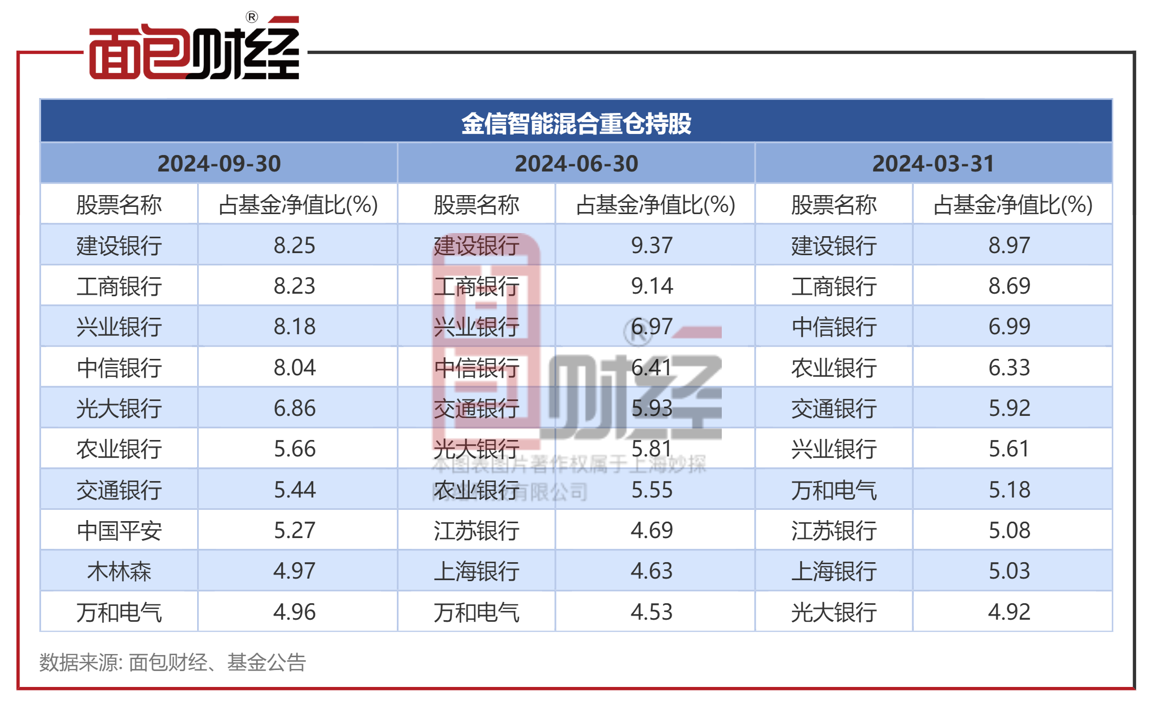 金信智能混合A:年内收益率25.4%,重仓押注银行股