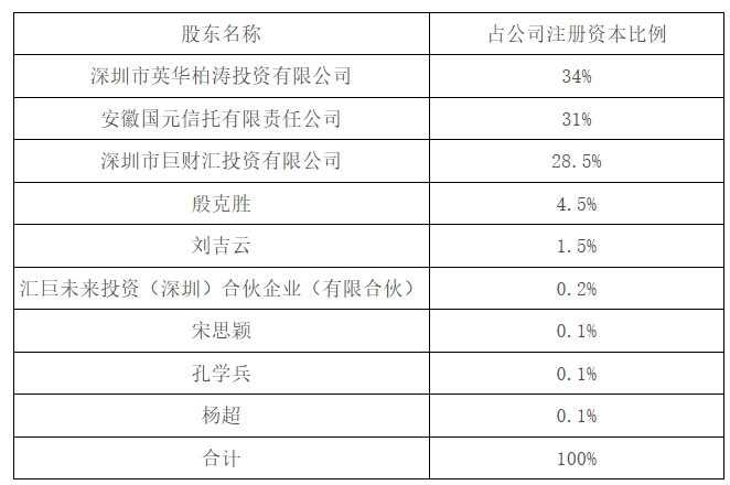 金信基金作为混合所有制的公募基金公司,其股东包含深圳市英华柏涛投资有限公司、安徽国元信托有限责任公司、深圳市巨财汇投资有限公司、殷克胜等。其中,殷克胜先生作为金信基金管理团队的代表,为金信基金的实际控制人。