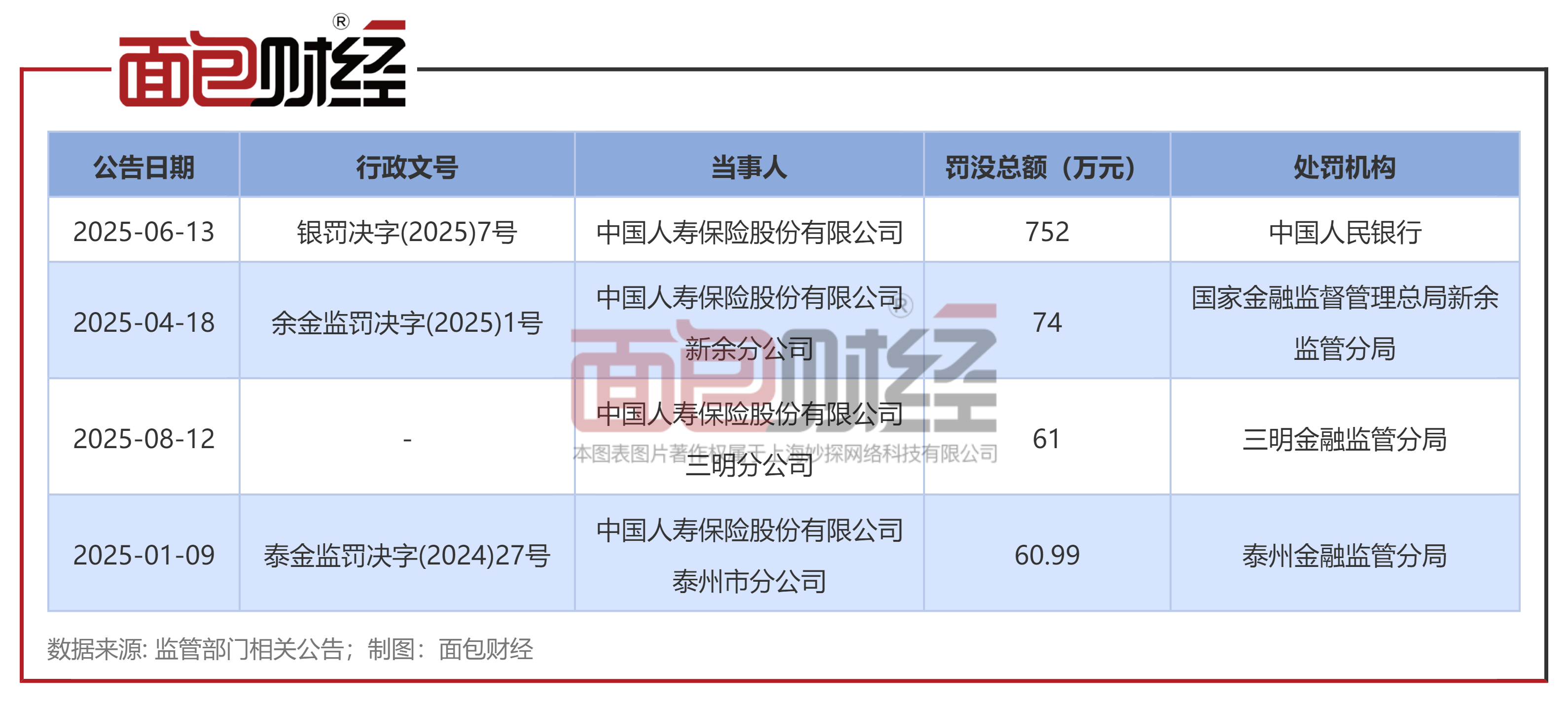 然而业绩增长的同时,公司的合规问题频发。近日,中国人寿连收6张罚单,6家机构合计被罚款近百万元。统计数据显示,2025年以来,中国人寿已收到多张罚单,总罚没金额超过1600万元。
