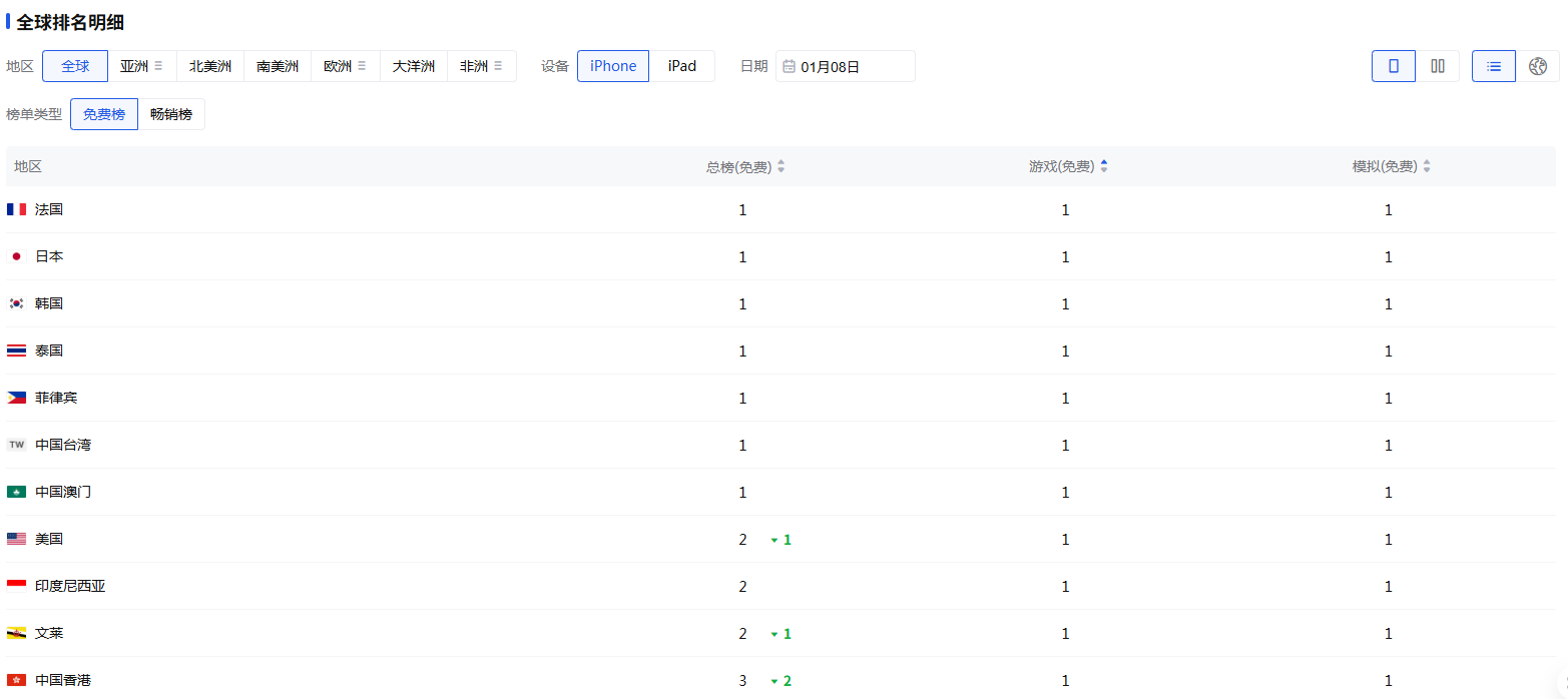 根据点点数据监测,《心动小镇》国际服上线当天,在全球数十个国家和地区的iOS游戏免费榜登顶,包括美国、日本、韩国、法国等主流市场。截至2026年1月12日下午3点,《心动小镇》在全球超过20个国家和地区排名iOS游戏畅销榜前100,包括日本、韩国、法国、泰国等。