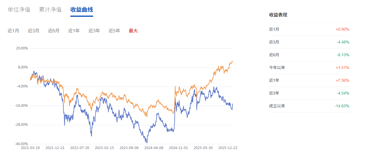 华宝新兴消费混合A自2021年3月成立以来,业绩表现持续承压,中短期收益均大幅跑输业绩比较基准。截至2026年1月29日,该基金不仅过去一年跑输基准超过15个百分点,且成立以来的累计净值仍处于下跌状态,同类排名靠后。
