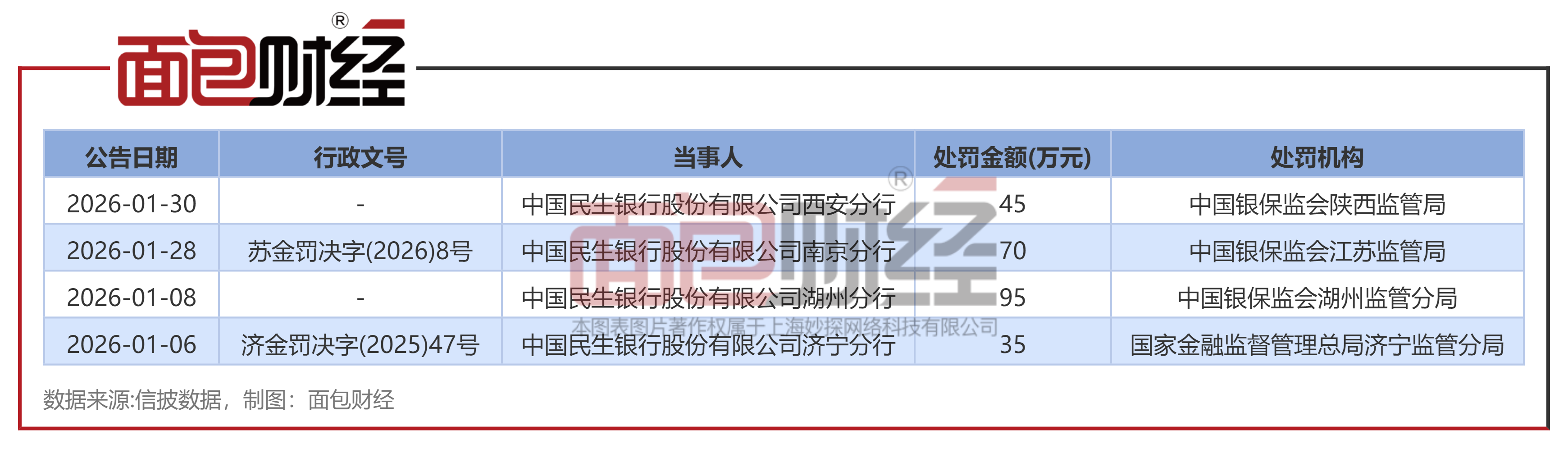 2026年以来,民生银行已收到多张罚单,罚没金额合计不低于245万元。
