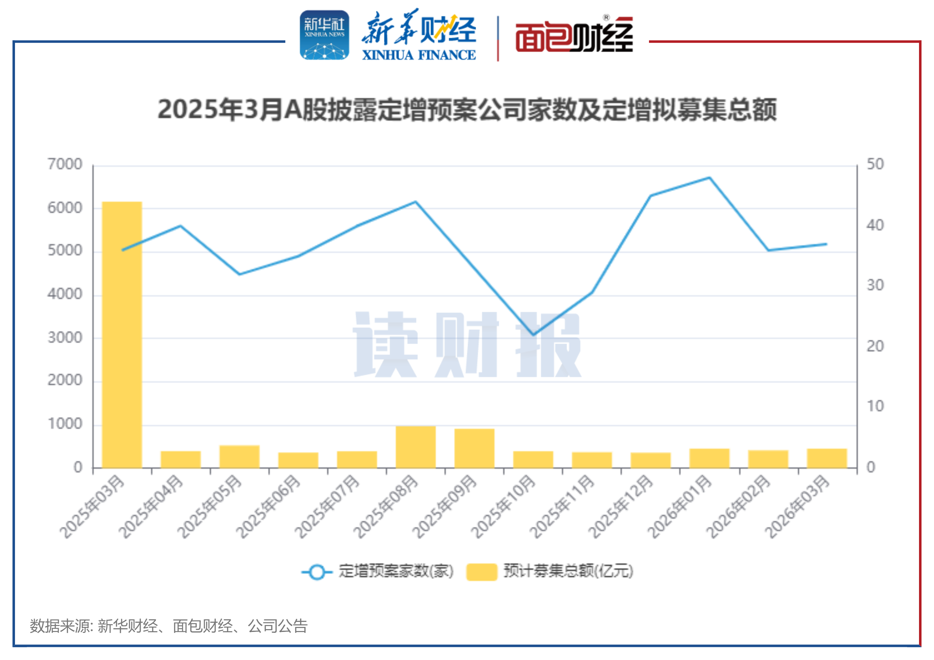 图4:2025年3月A股披露定增预案公司家数及定增拟募集总额