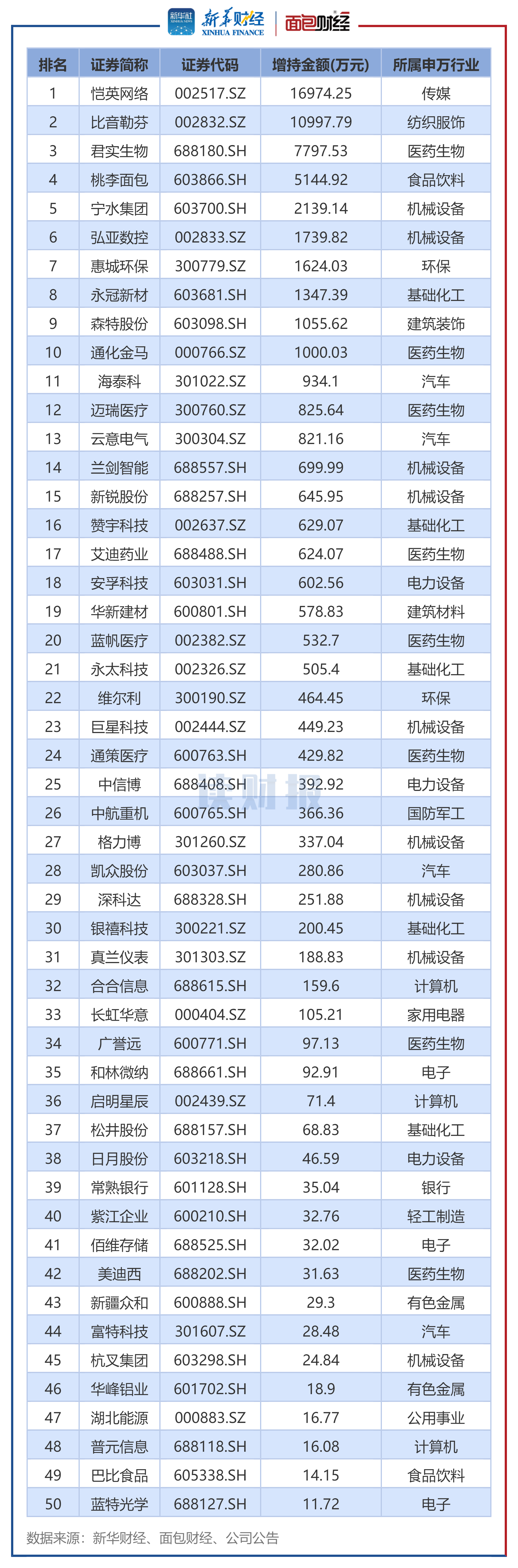 个股来看,恺英网络、比音勒芬、君实生物的增持金额排名前三。