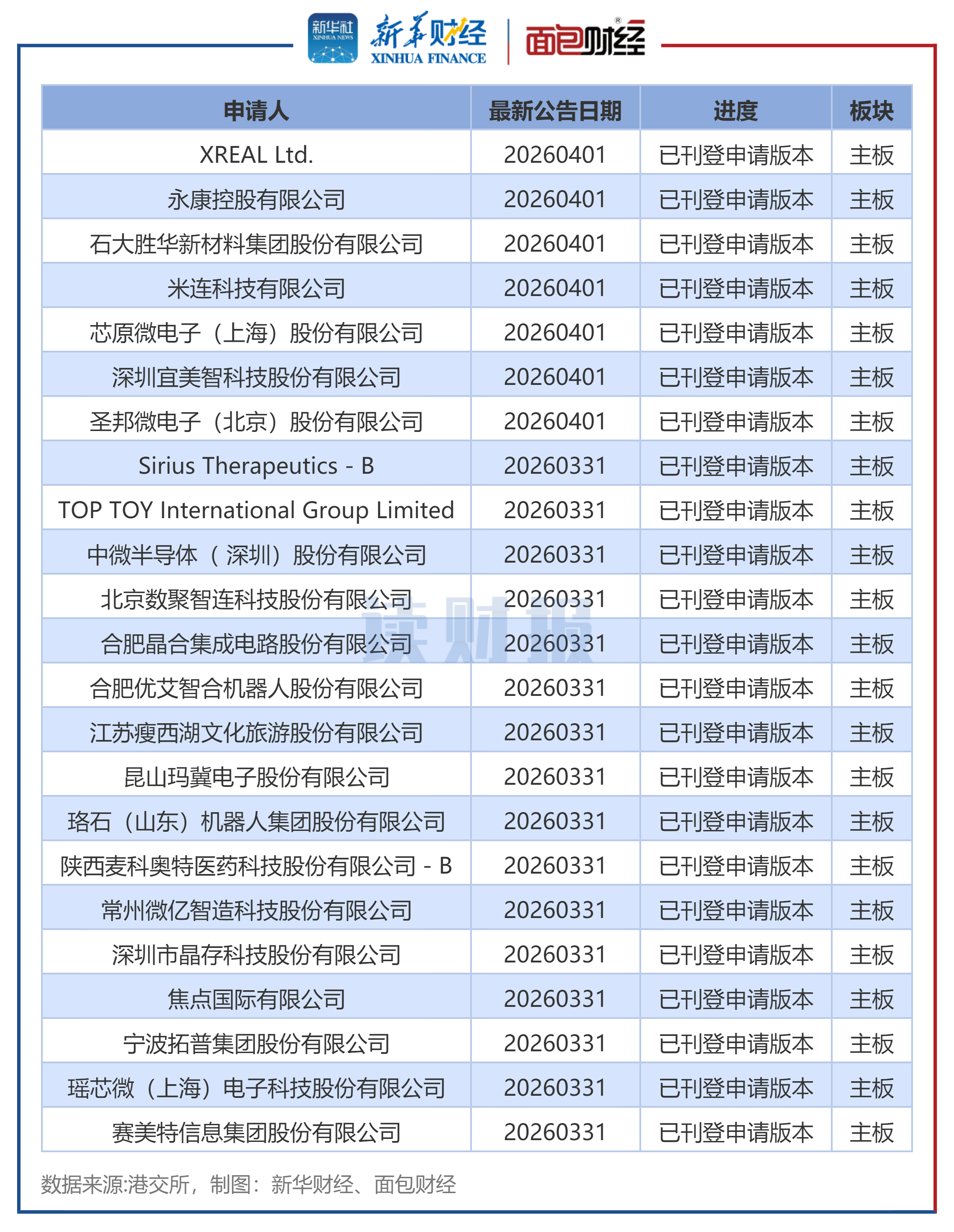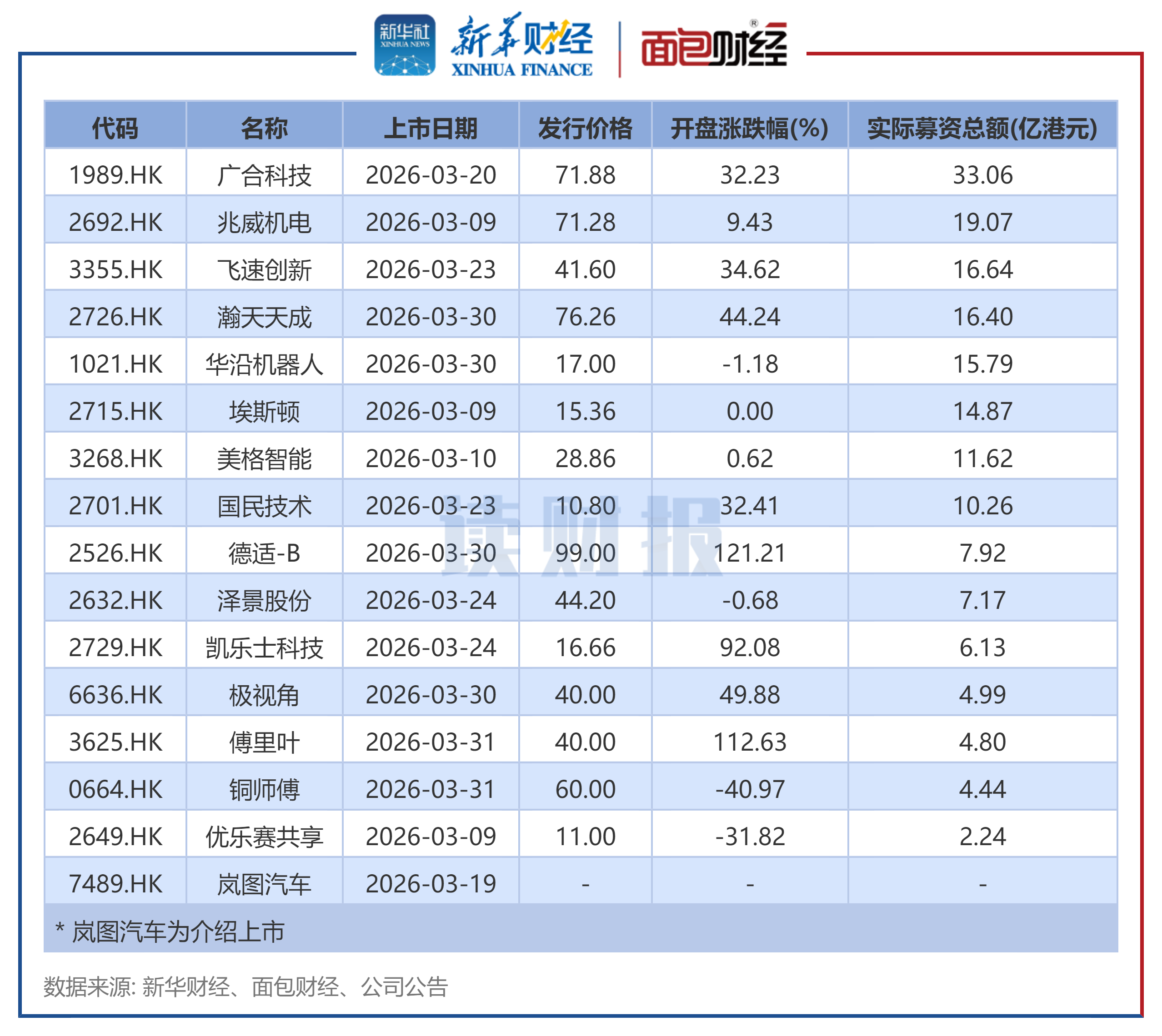 图1:2026年3月港交所上市新股