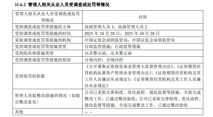 与公司处罚同步的是,博时基金两名高级管理人员也在2025年10月28日被深圳证监局出具警示函,原因同样是“合规内控”履职不到位。