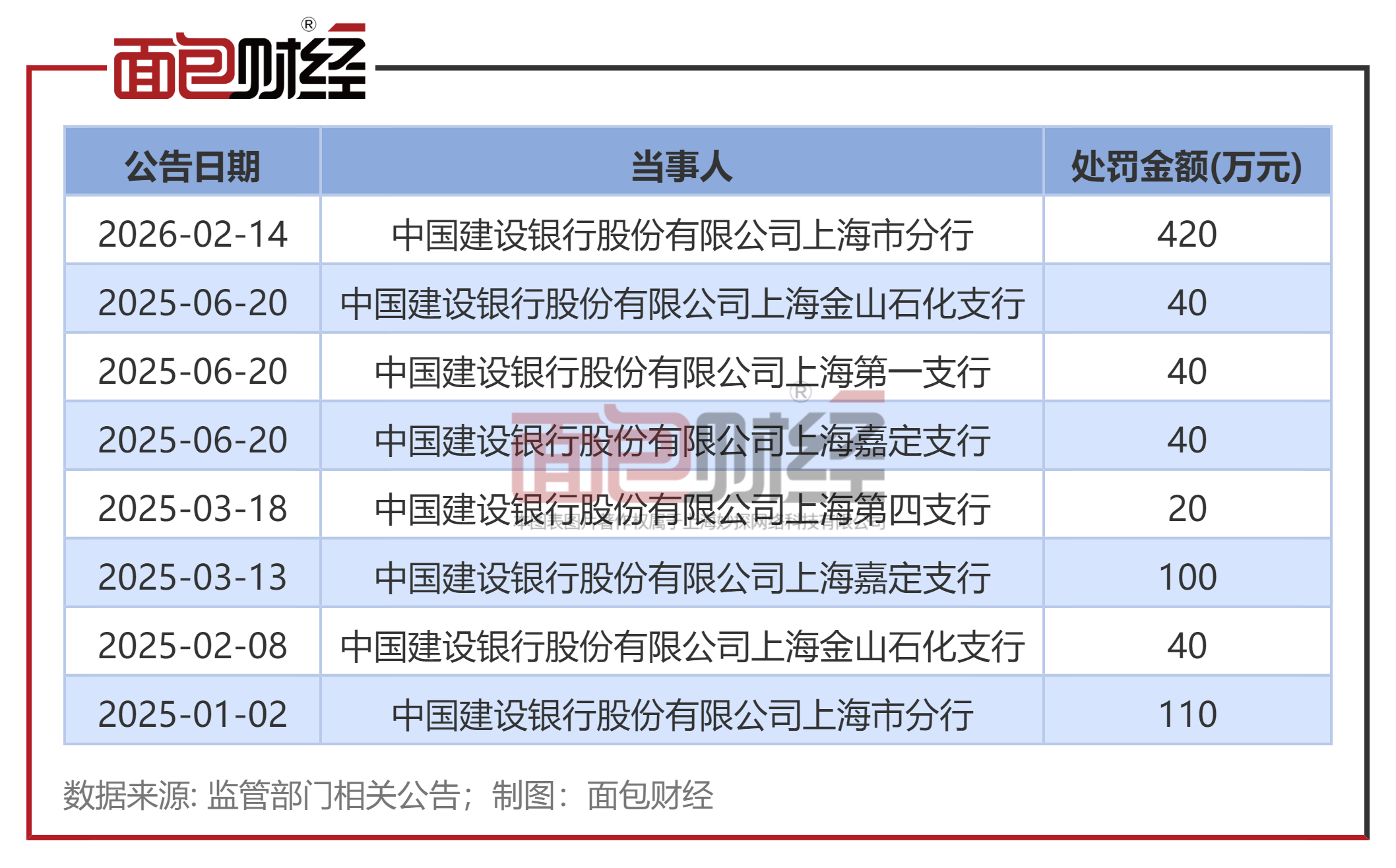 涉及多项严重违规,建设银行上海市分行领大额罚单