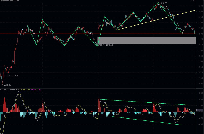 昨日前日,本人也一直给大家强调,突破2800之后不可以追高,小区间震荡2800-2820区间就是高点范围。今日高开至2808,稍微震荡后便1分钟级别下杀+震荡。