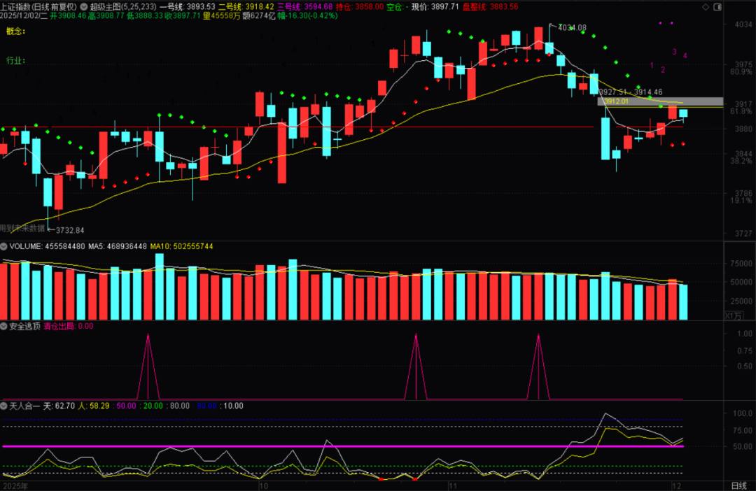 昨天20:00新浪微博讲课,说到了下跌7天,上涨7天的问题,虽然昨天收盘指数站在了左一K线3912.01之上,很多人把它看作上涨的确认,但从我的经验和角度上来看,我并没有那么乐观。也就是说,这里最多反弹到9天,搞不好今天也就下了...... 结果指数今天直接就下破3912.01开盘,说明还是没有足够的信心涨上去,所以从侧面也验证了我昨天减仓的正确性。不过,如果是想背后那只手埋玩的埋汰一点儿,那短时继续反弹反弹,估计会吸引不少的资金进来。从这里再扣下去,那力度或者杀伤力就非常大了。 今天收盘,上证指数日线小级别上涨第4天,天人合一人线在50数值之上上翘,前面已经讲过很多次,人线不下破50数值,你就不能够认为指数已经重新走好。所以,就目前的技术面而言,短期有没有虚晃一枪的可能性,你一定要考虑进去。千万不要在这个地方太过冲动,没有技术和策略的股友,等指数切实走好之后再去参与不迟。 从展锋-超级赛道来看,今天水产品排在赛道首位,也算是近段时间难得的亮点之一。海峡西岸、风沙治理概念板块容量比较有限,除了短期关注之外,不具备中线的价值。从现在的赛道排行情况来看,市场还是一蹶不振的状态,在没有出现大板块上榜突破之前,短线切不可进行大仓位的操作。 上周日和大牛哥比拼了一只赞赏G:300123亚光科技!说实话,我没想到这只股昨天开的这么高,但8元的开盘价只要你敢买,今天最高冲到8.95元,也算是完成了我那10%或以上止盈的预期。其实,如果按照我给学员讲的方法,这只个股最佳的买入点在11月21日的6.80元,这个方法也是短线最暴利的方法,结合好547策略的话,基本等于不败~~· 今天总体操作还可以,止盈了一仓领益智造、华伍股份,止盈了两仓天山电子,高点获利了结了创识科技,尾盘加仓了南都电源、黄河旋风、富春染织,新仓买入了大洋电机、福石控股,前者收盘略有亏损,或者有0.27元的获利,看看明天市场情绪如何?再决定个股的去与留! 市场走在了上下皆可的地步,没有技术或策略的股友,在这个时候最好不要轻举妄动。除了控制好仓位之外,继续耐心等待,是明智的选择。节奏感比较好的,可以继续低买高卖,赚看得到的钱! 免责声明:以上文章完全是展锋股市操作心得的,文章及言论所涉及个股及观点,不对任何人或机构构成买入或卖出建议!据此入市者,请风险自担!