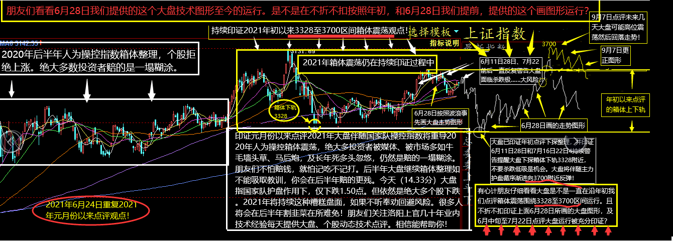 我们为什么点评印证大盘上攻3700!要防范突然杀跌下探第一支撑?相信长期跟踪我们点评大盘、个股文章“受益匪浅”粉丝朋友心知肚明。这两天感冒非常难受。周四收盘点评暂停。但我们坚信大盘不会改变7月28日至8月20点评上攻3700再回落观点。强烈提醒这两天我们的前瞻性连续剧点评对你近日操作仍有极大帮助作用。因此建议你继续认真阅读周三收盘点评。相信长期跟踪我们点评大盘、个股文章“受益匪浅”这些粉丝朋友心知肚明。我们建议始终不相信技术而天天希望天上掉馅饼“走马观花”这些朋友务必要回头看看今年春节后,和三月份。包括今年6、7月我们这些前瞻性点评文章。看看大盘是不是在印证年初以来我们点评大盘2021年必然围绕3328至3700区间反复箱体震荡?看看大盘是不是在印证三月份我们先知先觉点评大盘上攻箱体上轨3630受阻回落?看看大盘是不是充分印证6月28至7月22日反复警告提醒大盘必然下探特大箱体下轨3328(实际下探3312)。你如果想在A股特色市场更好生存发财?我们仍然建议你看看大盘是不是又……在印证7月28日至8月20、23、24、25日我们天天提醒大盘必然上攻特大箱体上轨3700(动态更正3620)附近压力?而且我们利用自己几十年业内技术经验利用形态理论、切线理论、波浪理论……在6月28日就提前画出了大盘之后几个月的走势直至目前被充……分印证。我们如此“尽心尽力”绞尽脑汁利用自己几十年经验为投资者提供“先知先觉”前瞻性帮助。但……仍有一些走马观花、不知死活、不相信技术、不知好歹朋友对我们恶言恶语攻击。对此我们再次提醒这些不知好歹小朋友。建议你仔细看看文章下面第一、第二两个截图详细内容看看我们是不是在说瞎话?那么市场缘何长期窝窝囊囊箱体震荡折磨投资者?希望在股市更好生存赚钱这些朋友。建议你务必关注8月11日、5月17日登高望远战略性、前瞻性点评为你提供先知先觉帮助。