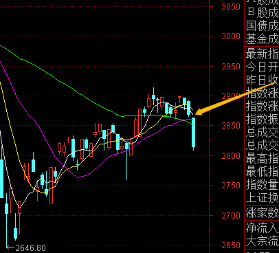 这个跳空低开的大阴线 有效的破掉了多条重要的均线。就如一个小鸟吊着一个大鱼,小鸟的力气不大,这么大的鱼 就让脖子断掉了 。