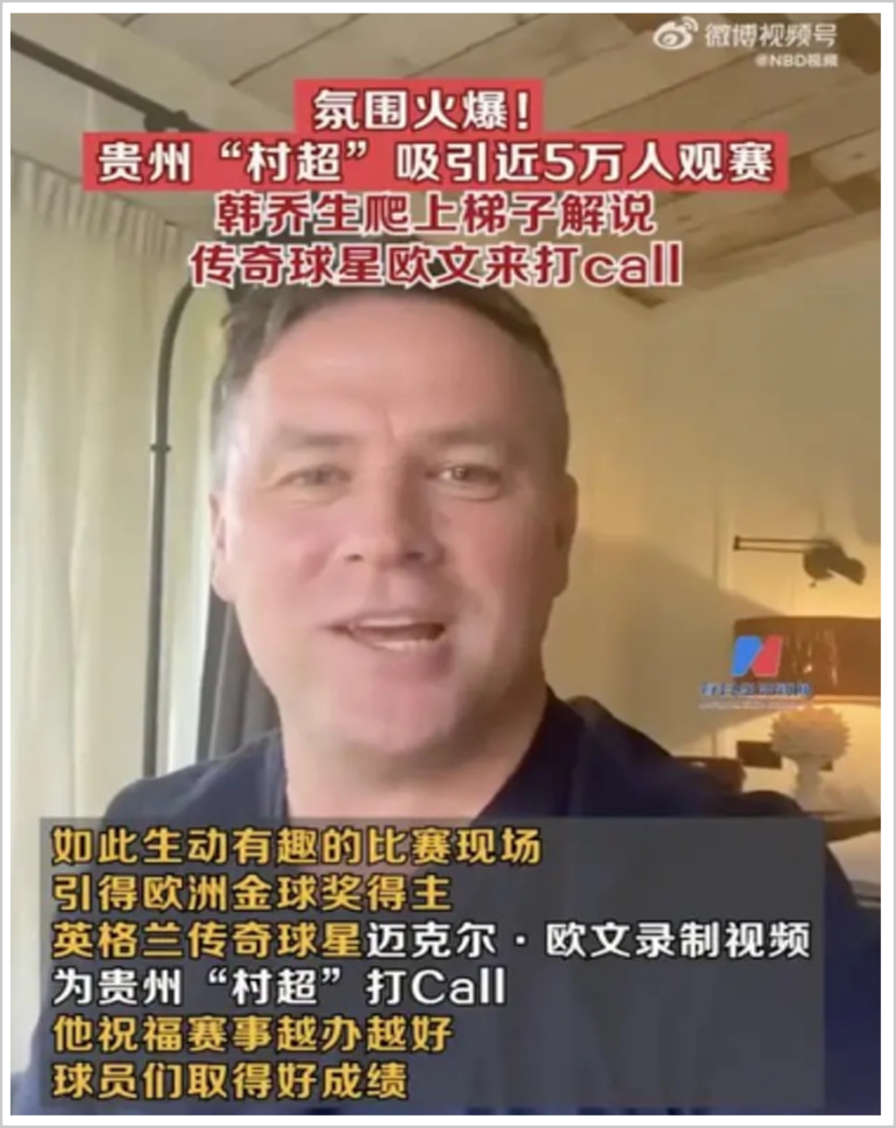 除了亲自到场的韩乔生,知名足球评论员黄健翔、贺炜等也纷纷为村超点赞。不仅如此,欧洲金球奖得主、英格兰传奇球星迈克尔·欧文还特地录制了视频,为村超加油鼓励。