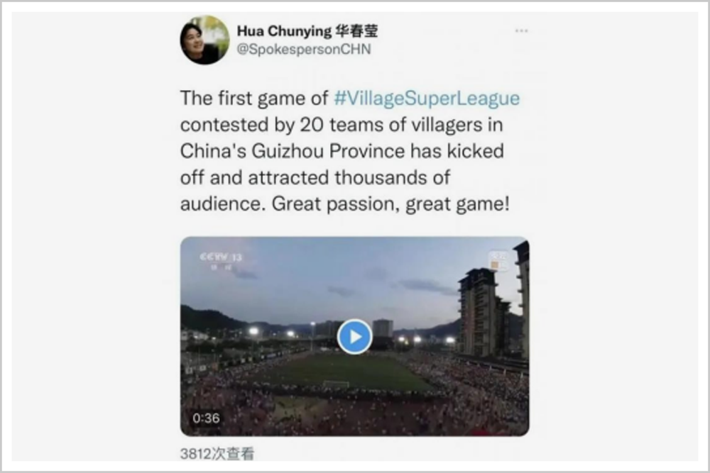 两周内,村超的相关内容创造了十多个抖音热点,登上其全国热榜,话题“#贵州村超”建立3天内,阅读量超1亿!