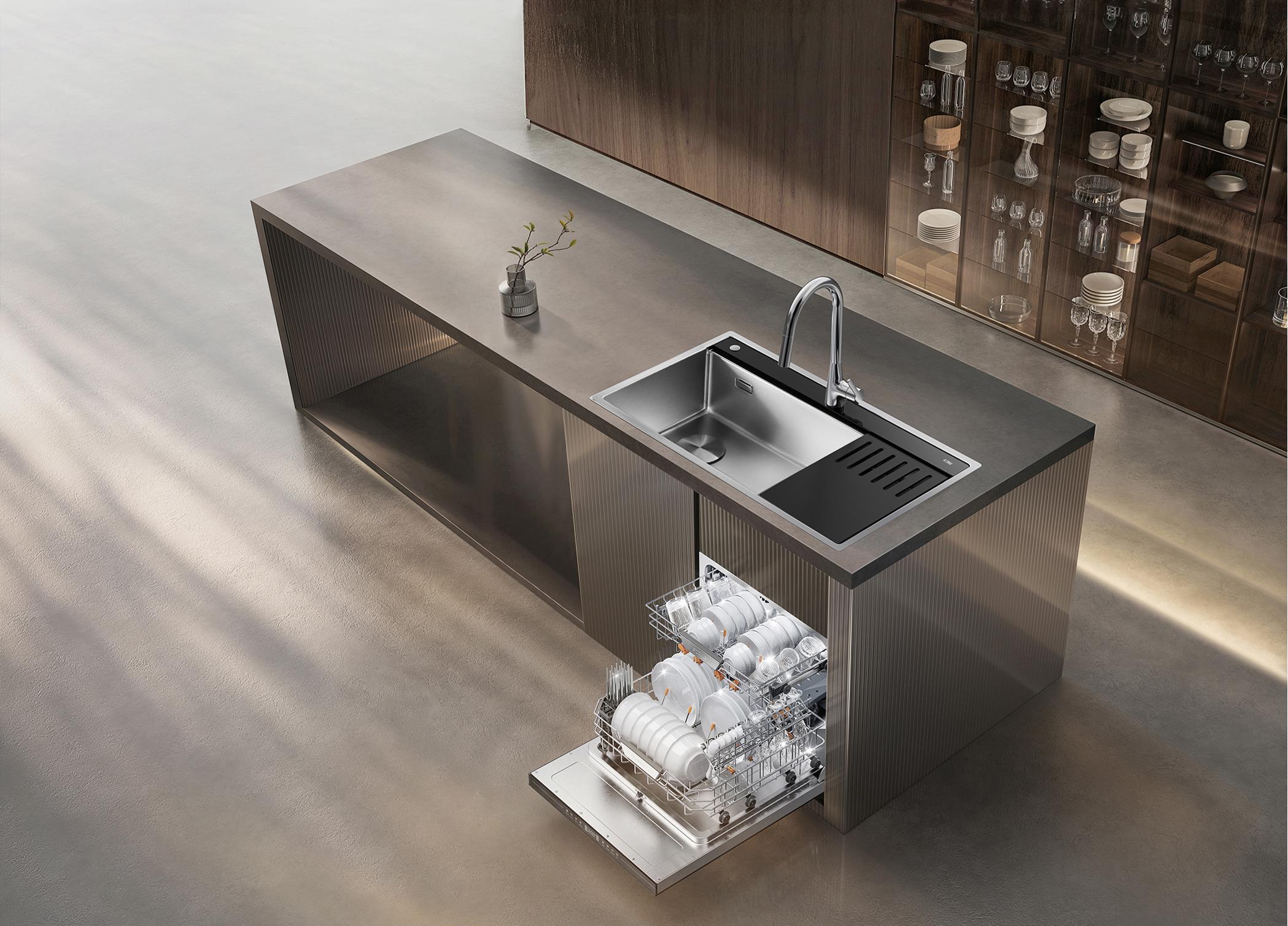 问题的解决之道,就在厨房的水槽里,可以用“水槽洗碗机”,适配厨房空间有限的住宅。