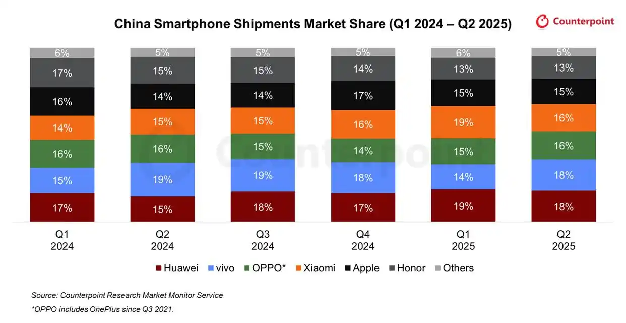 来自Counterpoint、IDC等多家权威机构的数据显示:中国手机市场,正向头部玩家高度集中!