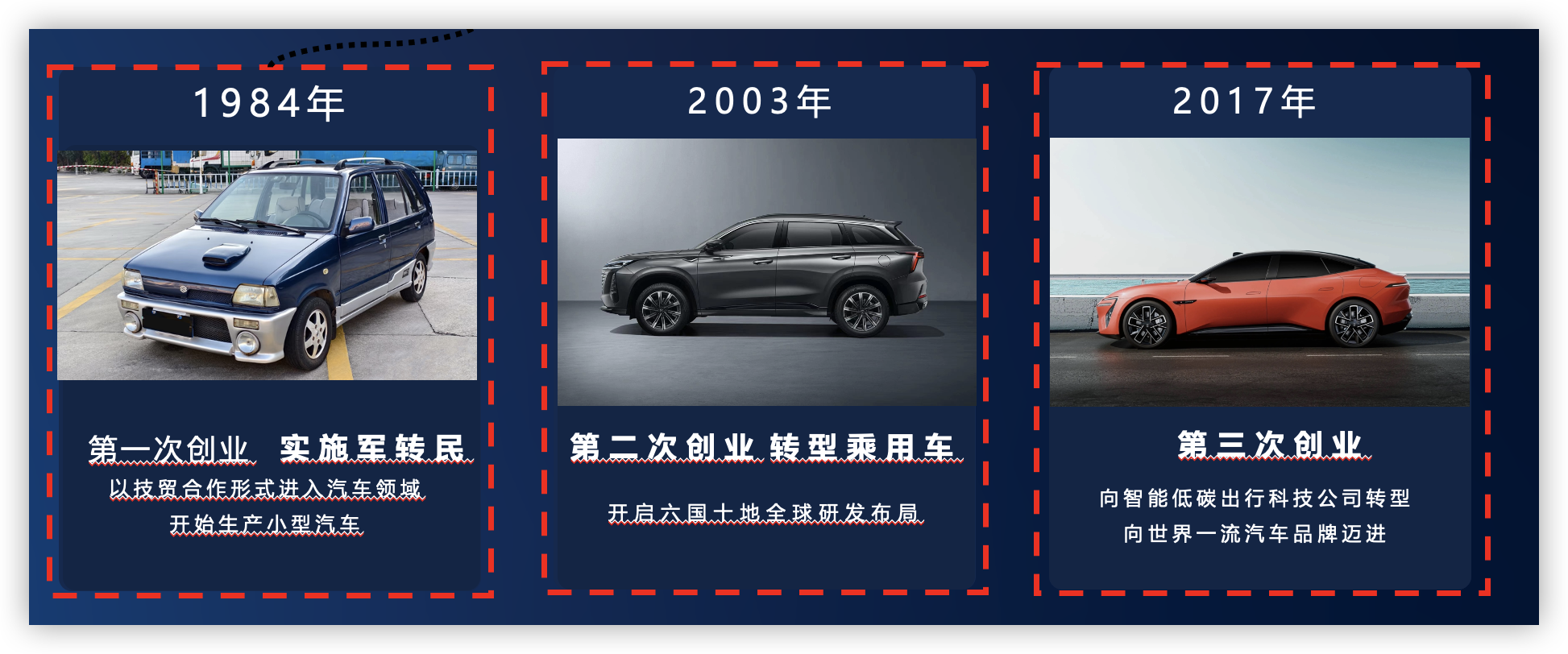 上世纪80年代,长安启动“军转民”,主动蹚入市场经济大河,解决生存问题,甚至自己拆解样车,达成与日本铃木合作微型车;2003年,紧跟私家车普及大潮,启动二次“创业”,从商用车转向乘用车;