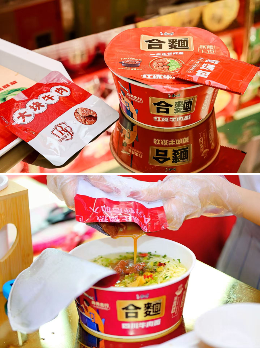 山姆上线了康师傅定制产品潮卤牛三宝牛肉面、白松露鸡腿鸡汤面;Premium优选杯入驻开市客、进驻东航渠道,成功飞入南美航线及贵宾休息室;量贩零食店“好想来”里,也有康师傅年货礼盒的身影。更有意思的是,过去,方便面因为外卖崛起而被唱衰,但现在,康师傅却把新品“合麵”铺进了外卖(即时零售)渠道。