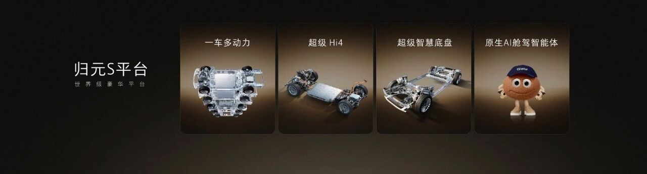 长城汽车的归元S豪华平台,凝聚长城36年的造车积淀,实现了四大超级技术的合体:一车多动力、超级Hi4、超级AI智能底盘、超级原生AI智能体。