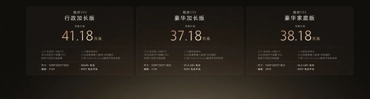 起售价37.18万起的魏牌V9X,集一车多动力、4.6秒破百的超级Hi4、百万级智慧底盘及原生AI智能体于一身,以东方美学与极致体验和安全,成为中国豪华的性能与颜值新担当。