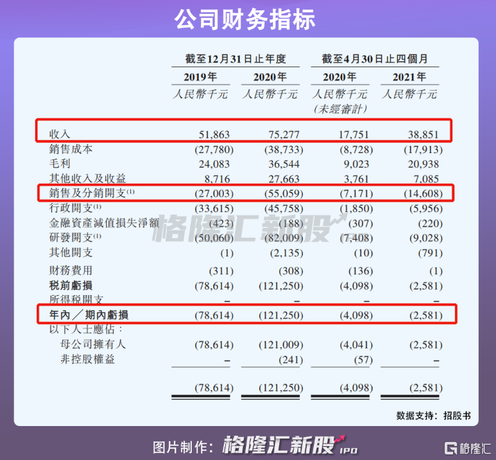 尽管已有3款产品上市,微泰医疗的亏损仍在进一步扩大,2019年-2020年公司的净亏损达7861万元、1.21亿元,除了不断走高销售及分销开支,高额的行政开支、研发开支也是导致公司持续亏损的原因。