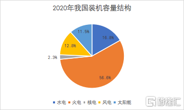 就目前我国的能源结构看,太阳能装机容量占比偏低,2020年底仅11.52%。2020年底全国发电装机容量22亿千瓦,其中火电12.5亿千瓦,占56%,超过一半。太阳能装机容量2.53亿千瓦,占比11.52%。