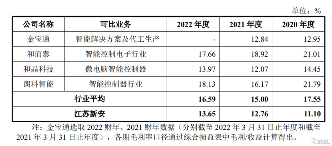 智能控制器业务公司业务毛利率与同行业的比较,图片来源:招股书