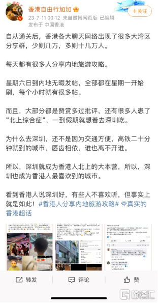 很多大湾区分享群也开始涌现,少则几万,多则十几万人,其中很多人每周末都在内地消费,每周一便在分享群里疯狂发帖。