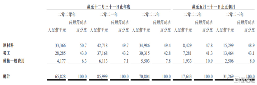 公司的业务受到盆栽蔬菜农产品原材料成本波动的影响,2020年至2023年前五个月,富景农业的原材料成本分别占其总销售成本的50%左右,如果原材料供应短缺或涨价,可能会抬升公司盆栽蔬菜农产品的生产成本,从而影响公司的毛利率及盈利能力。