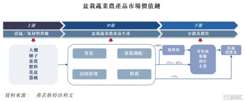 从竞争格局来看,富景农业所处的盆栽蔬菜农产品行业高度分散,有众多参与者,行业竞争激烈。富景农业主要通过分销商网络销售盆栽蔬菜农产品,公司的分销商再将产品转售至山东省、西安市及大连市的逾1000名客户,其中大部分为酒店及餐厅。同时公司也向中国的酒店及餐厅等终端客户直接销售少量产品。