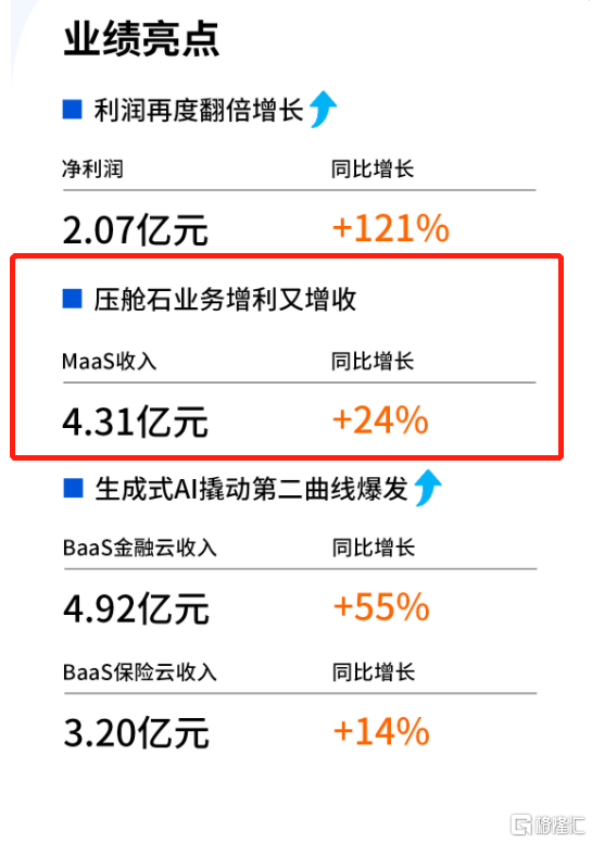 笔者观察到,本财季中,港股有公司给出了更直接的MaaS模式的发展数据:近日百融云创发布的财报显示,作为压舱石的MaaS业务实现收入4.31元,同比增长24%。