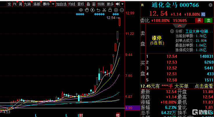 值得一提是,其中通化金马已是斩获5连板,报12.54元,股价创出近4年新高,今日涨停板上封单超14万手。而自8月30日以来的13个交易日,该股累积涨幅已翻倍。