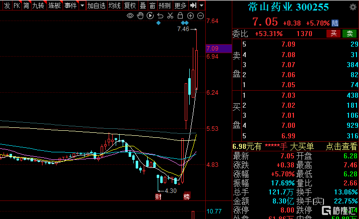 常山药业是近期的另一只医药大牛股。今天上午上涨5.7%,近5个交易日累计涨超58%。