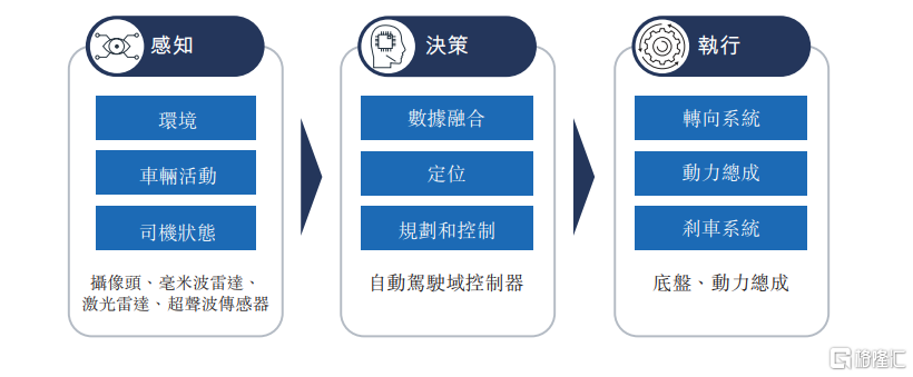 按现阶段对于自动驾驶系统划分的三个层级(感知、决策及执行)来看,域控制器在决策环节扮演着相当于人类大脑的角色,因此一向有着“智能汽车大脑”之称,其价值不言而喻。