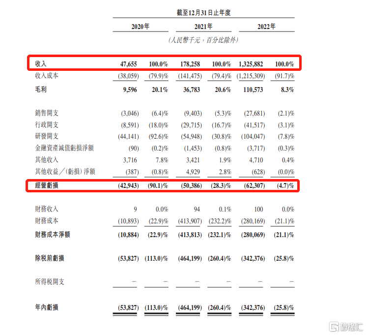 招股书显示,2020-2022年,公司的经营亏损率从90.1%大幅缩减至4.7%;而刨除股份支付及上市费用之后,同期公司的年度经调整净亏损额也呈逐年递减趋势,由3567万元减少1687万元。