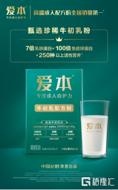 近期,飞鹤旗下成人营养明星品牌爱本,荣获两项销量第一:"高端成人奶粉全国销量第一"、"高端牛初乳奶粉全国销量第一",凭借卓越品质和专业营养赢得市场认可以及消费者的青睐。
