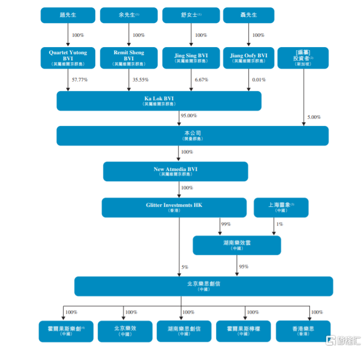 股东架构方面,招股书显示,本次发行前,Ka Lok BVI持有乐思集团95%的股份,而在Ka Lok BVI的股东结构中,赵利兵通过Quartet Yutong BVI持股57.77%,余灿良通过Remit Sheng BVI持股35.55%,余灿良的配偶舒清通过Jing Sing BVI持股6.67%,聂江通过Jiang Oofy BVI持股0.01%。