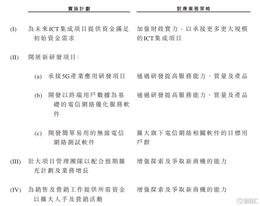本次申请上市,经纬天地拟募集资金用于为未来ICT集成项目提供资金满足初始资金需求、开展新研发项目、壮大项目管理团队以配合预期扩充计划及业务增长、为销售及营销工作提供所需资金以扩大人手及营销活动。