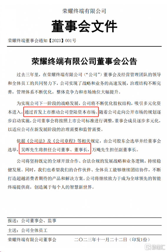 11月22日晚,荣耀官宣将通过IPO方式登陆资本市场。