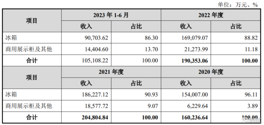 具体来看,报告期内,雪祺电气的主营业务收入主要来自于冰箱、商用展示柜的销售,其中冰箱的营收占比在80%以上,是公司的重要收入来源。