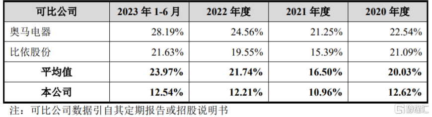 报告期内,雪祺电气的毛利率分别为12.62%、10.96%、12.21%、12.54%,明显低于同行业可比公司平均值,由于公司与同行业可比公司具体业务结构、销售模式、产品结构以及销售市场等均有一定差异;同时公司业务规模和所处发展阶段与同行业可比公司亦存在差异导致。