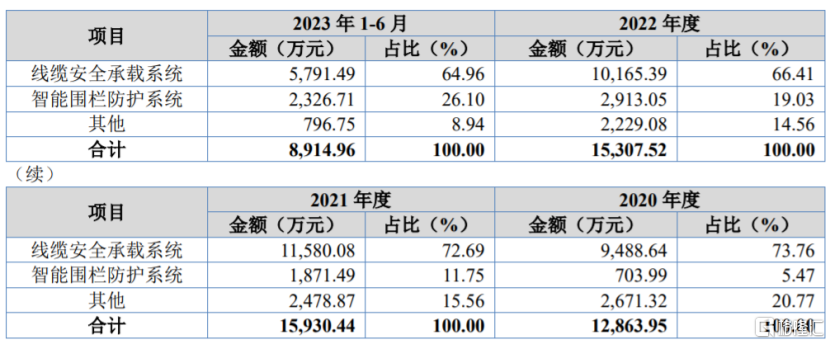 格隆汇了解到,纬诚科技的主要业务系智能安全防护系统的研发、生产及销售,主要产品包括线缆安全承载系统及智能围栏防护系统。报告期内,线缆安全承载系统的营收占比呈下滑趋势,但仍在60%以上,是公司的重要收入来源。