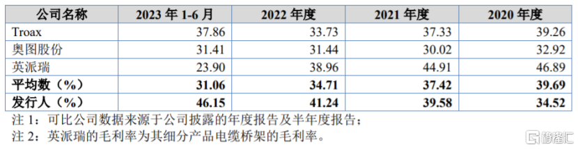 可比公司毛利率比较分析,图片来源:招股书
