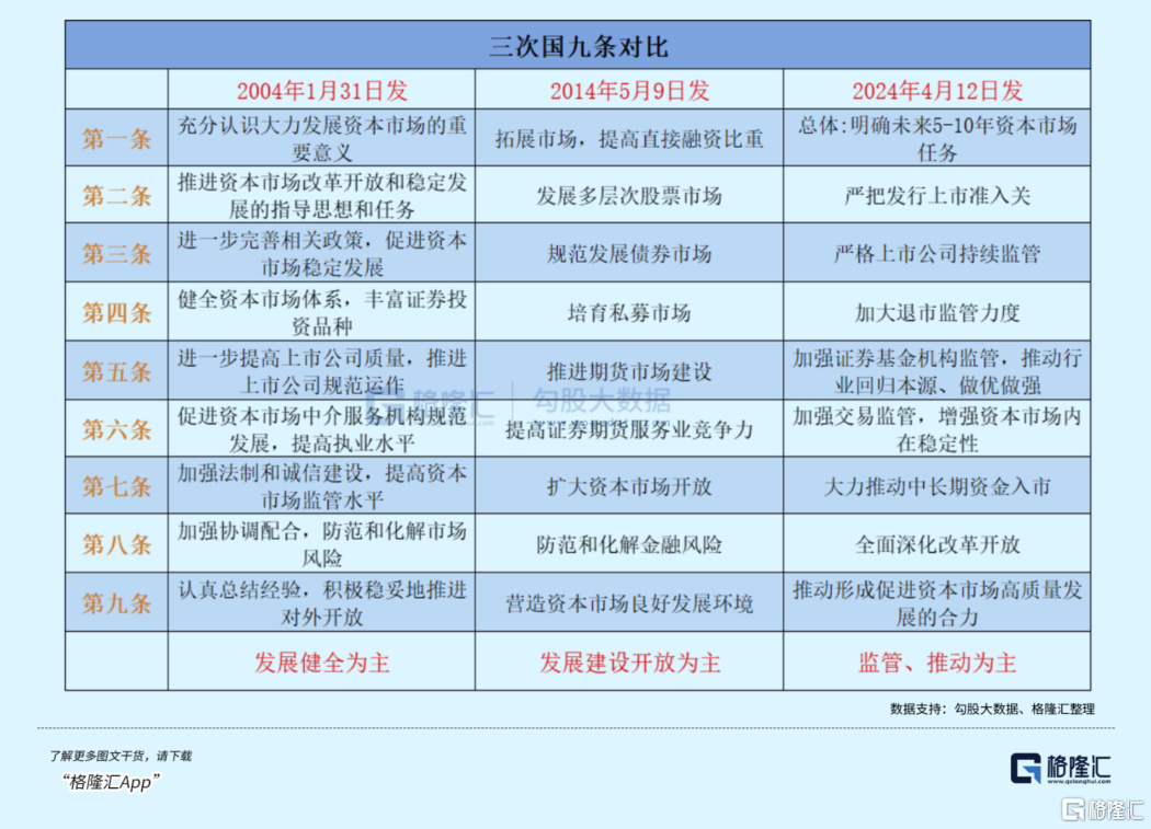 三次“国九条”政策,最主要不同点之一在于各自承担的“任务”不同。