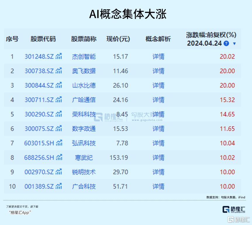 随着美股科技大佬们昨晚全面大回血,国内才消退2天的AI概念又嗨起来了。