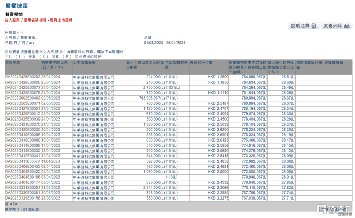 与此同时,中手游董事长兼CEO肖健已经从4月24日开始进行了连续增持动作。截至4月26日收盘,肖健三次增持共涉资147.49万港元,最新持股数目为7.85亿股股份,持仓比例由28.50%升至28.51%。据悉,去年同期,肖健也曾近20次连续增持中手游,合计增持中手游约1423.6万股。