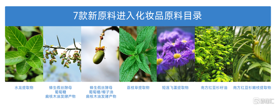 作为聚焦功效护肤赛道的本土企业,贝泰妮集团自2010年成立之初就注重科研投入,专注于产品原料的创新研发。得益于研发端的持续发力,贝泰妮在植物提取领域已经建立相当壁垒,围绕云南丰富的植物资源,公司陆续研制出了多款新原料。截止目前,贝泰妮已有七款新原料通过备案,在护肤原料领域的科研创新取得重大突破。其中,水龙提取物、短莲飞蓬提取物、扁核木油发酵产物等已完成国家化妆品新原料备案。
