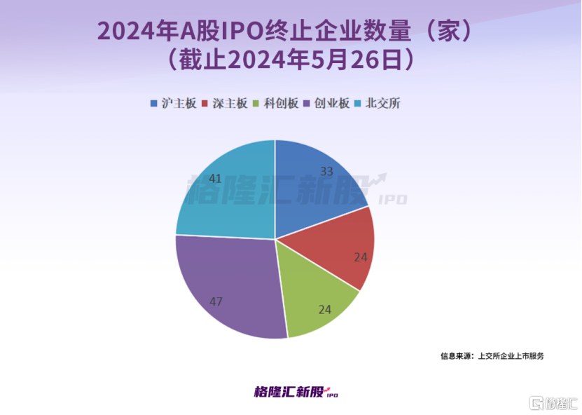上交所企业上市服务信息显示,截至5月26日,2024年已公布终止审查(撤材料+否决/终止注册)企业169家,其中上交所57家(主板33家、科创板24家),深交所71家(主板24家、创业板47家),北交所41家。