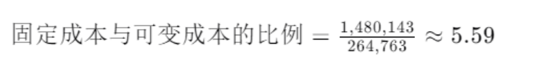 根据计算结果,2024年的固定成本是可变成本的大约5.59倍。某种程度上,固定成本比例较高往往会有较高的经营杠杆。