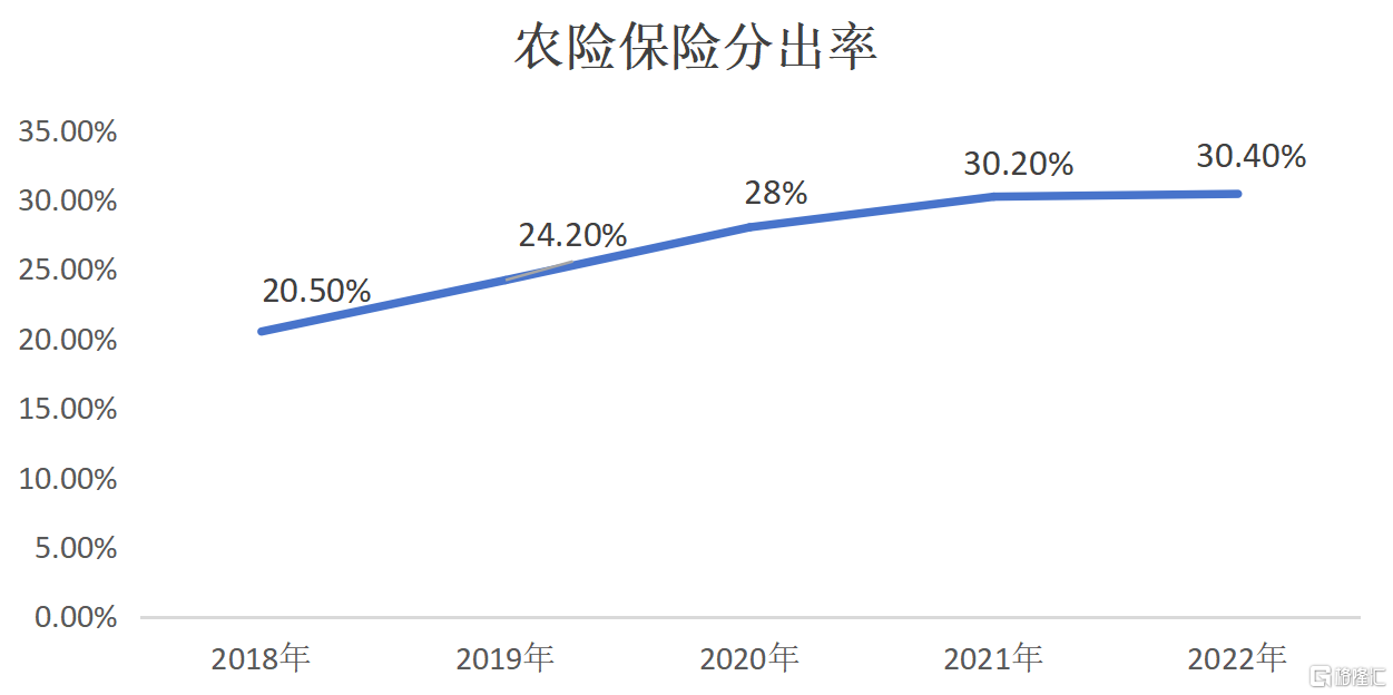可以预期的是,随着农业保险业务规模持续增长,直保公司面临的风险敞口与日俱增,直保公司的分保需求也同步提升,叠加农业再保险市场的不断发展,农业保险对于再保险的分出率整体呈现上升趋势。数据显示,我国农业保险分出率从2018年的20.5%逐步提升到2022年的30.4%。