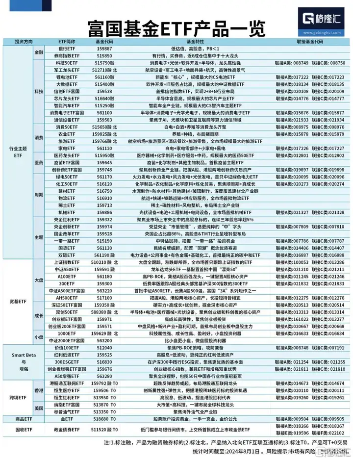 比如作为“老十家”公募基金公司之一的富国基金,长期资产管理规模居前,且深耕指数投资领域多年,目前非货ETF产品数量超50只,已形成完备的ETF产品线,涵盖宽基、行业主题、跨境等,非货ETF管理规模超千亿。